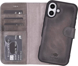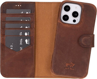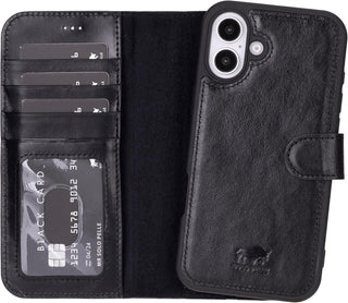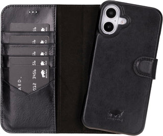 Solo Pelle Lederhülle kompatibel für iPhone 16 Pro in 6.3 Zoll (2in1) inkl. Kartenfächer geeignet für MagSafe Zubehör I Duke Schwarz