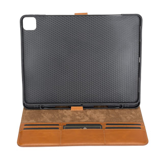 Solo Pelle abnehmbare Lederhülle Harvard geeignet für Apple iPad Pro 12.9" 2018 Hülle Cover Schwarz aus echtem Leder mit Stifthalter. Pencil 2 magnetisch Laden möglich (Cognac Braun Burned)