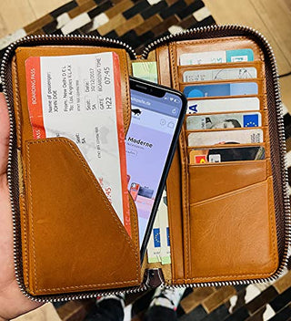 Solo Pelle " Universal Wallet passend für Apple iPhone 17 und iPhone 11 bis 16 Pro Max und Geräte bis 7,1 Zoll Reiseetui I Geldbörse aus echtem Leder (Cognac Braun Effekt) Maß: 8,8cm x 18cm x 2,3cm