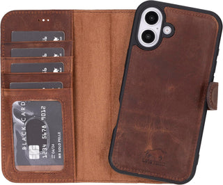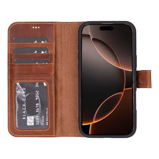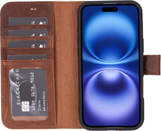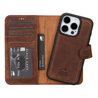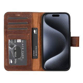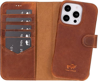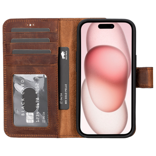 Solo Pelle Lederhülle kompatibel für iPhone 15 in 6.1 Zoll abnehmbare Hülle (2in1) - Vintage Braun