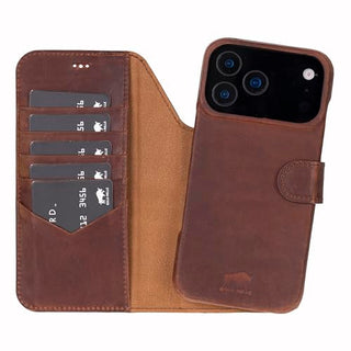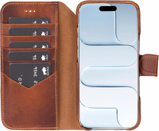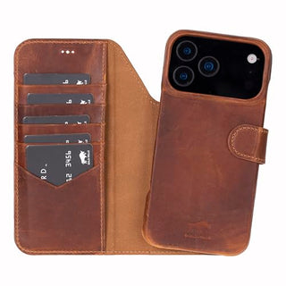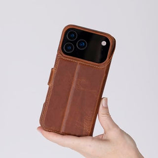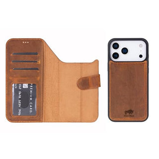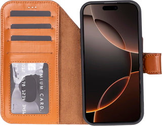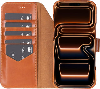 Solo Pelle Cognac Braun Lederhülle kompatibel für iPhone 17 Pro Max in 6.9 Zoll abnehmbare Hülle (2in1) inkl. Kartenfächer geeignet für MagSafe Zubehör