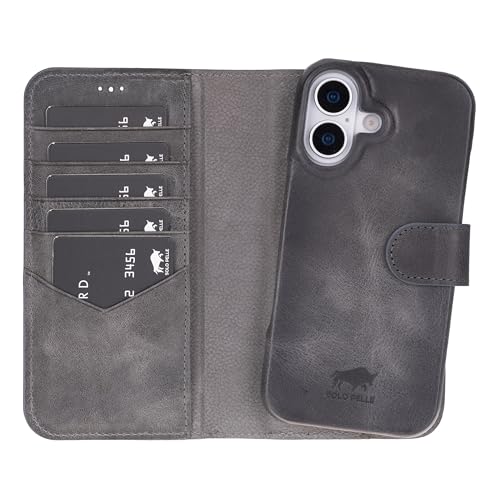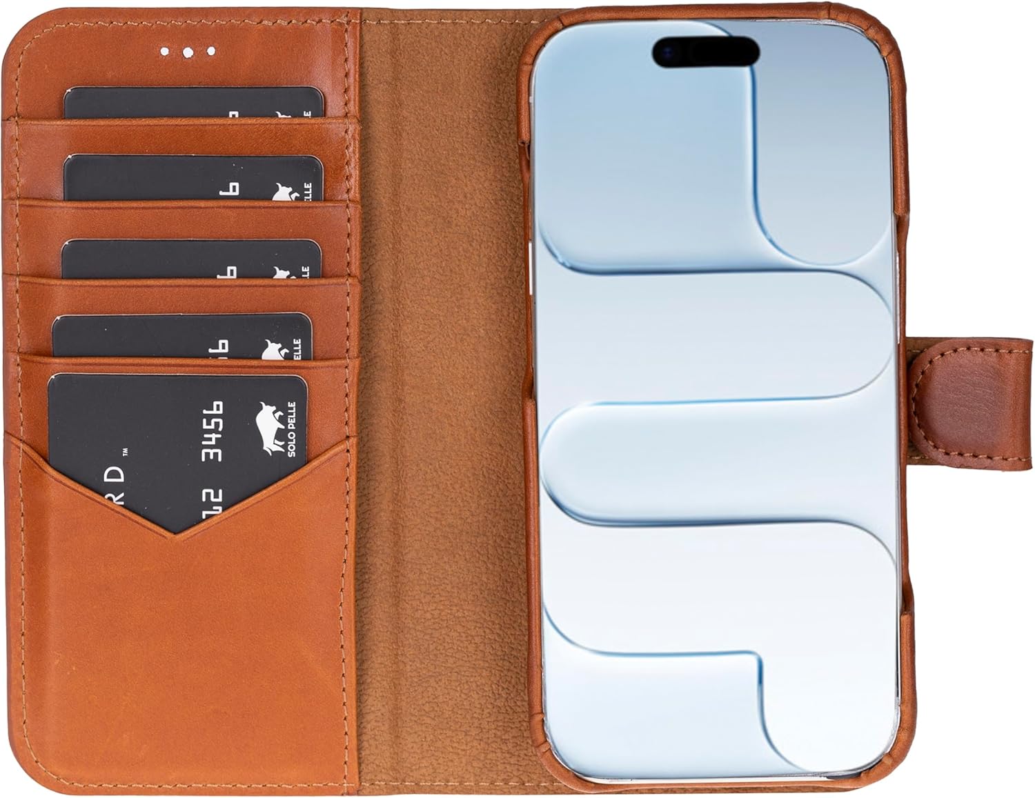 Cognac Braun Braun Solo Pelle Lederhülle kompatibel für iPhone 17 in 6.3 Zoll abnehmbare Hülle (2in1) inkl. Kartenfächer geeignet für MagSafe Zubehör