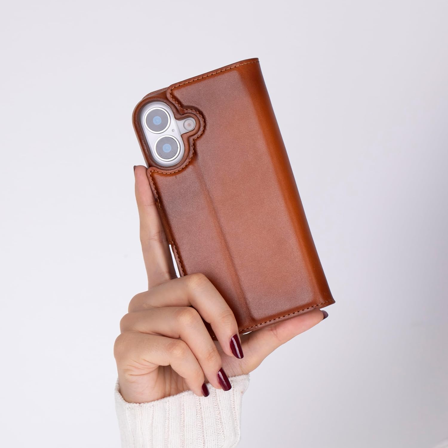 • HOHER SCHUTZ: Hochwertig verarbeitetes Echtleder und gehärteter Kunststoff kombinieren elegantes Design und einen perfekten Rundumschutz für Ihr Apple iPhone 17. Der Magnet-Verschluss an der schönen Ledertasche hält die Klapphülle geschlossen. Somit ist Ihr Display geschützt & vor Schmutz, Kratzer & Abnutzungserscheinungen geschützt.