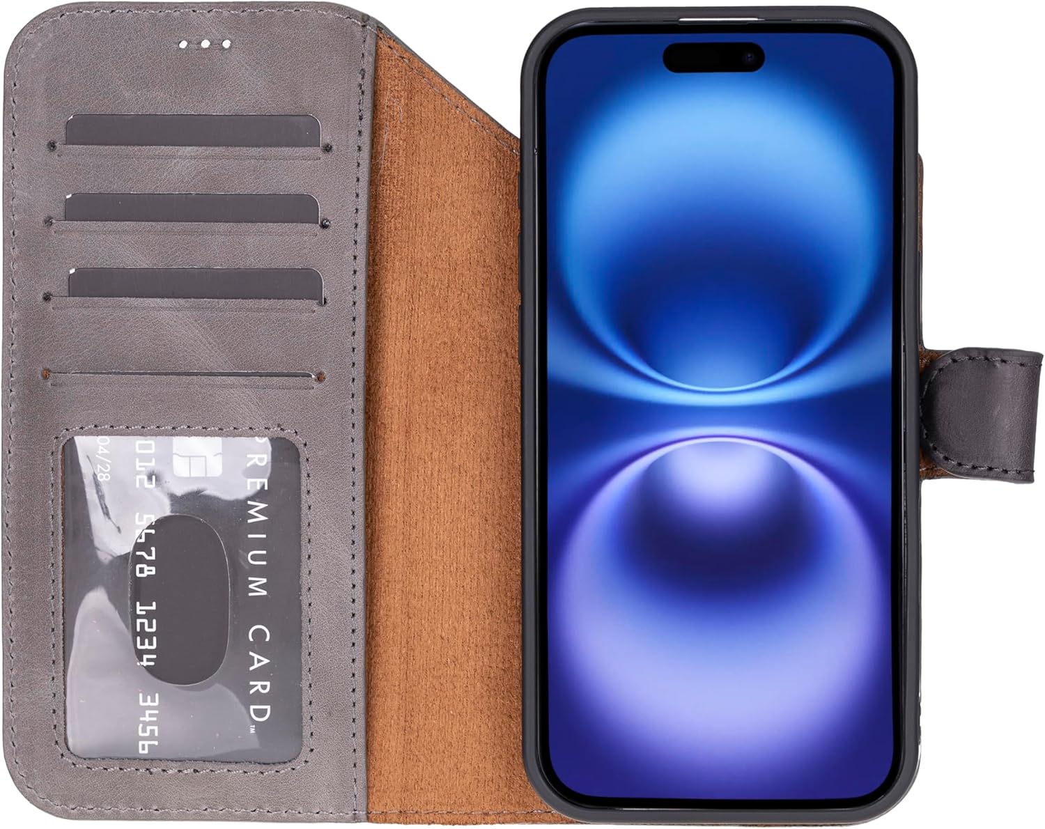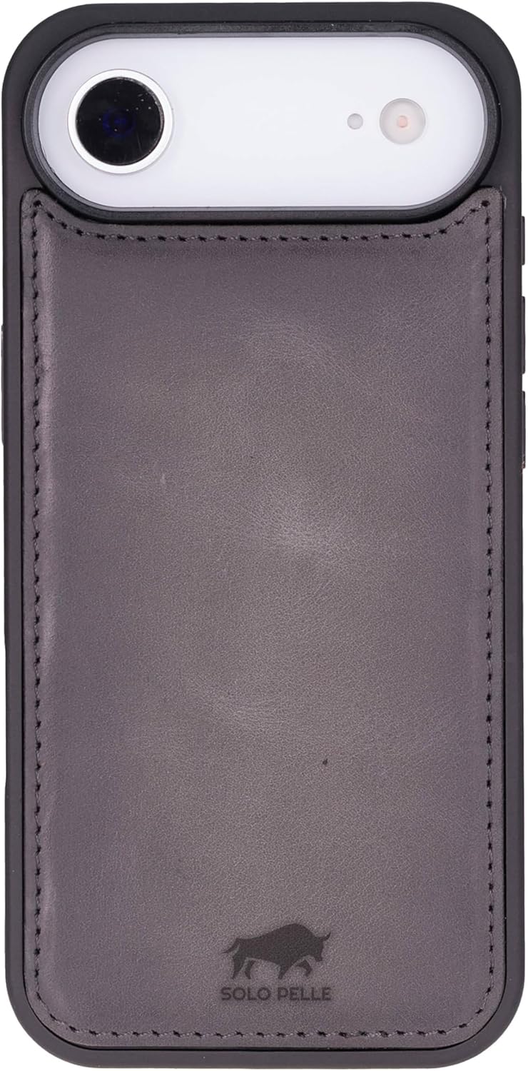 This Solo Pelle Steingrau Lederhülle kompatibel für iPhone Air in 6.5 Zoll abnehmbare Hülle (2in1) inkl. Kartenfächer geeignet für MagSafe Zubehör