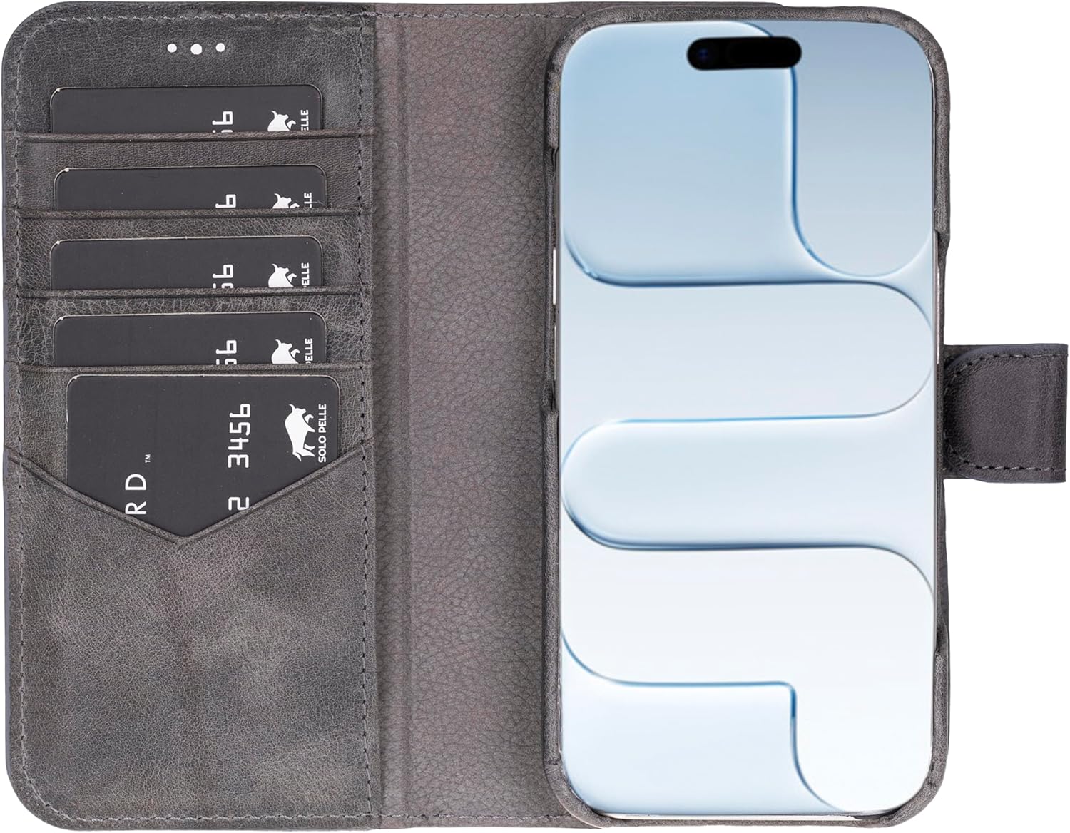 Steingrau Braun Braun Solo Pelle Lederhülle kompatibel für iPhone 17 in 6.3 Zoll abnehmbare Hülle (2in1) inkl. Kartenfächer geeignet für MagSafe Zubehör